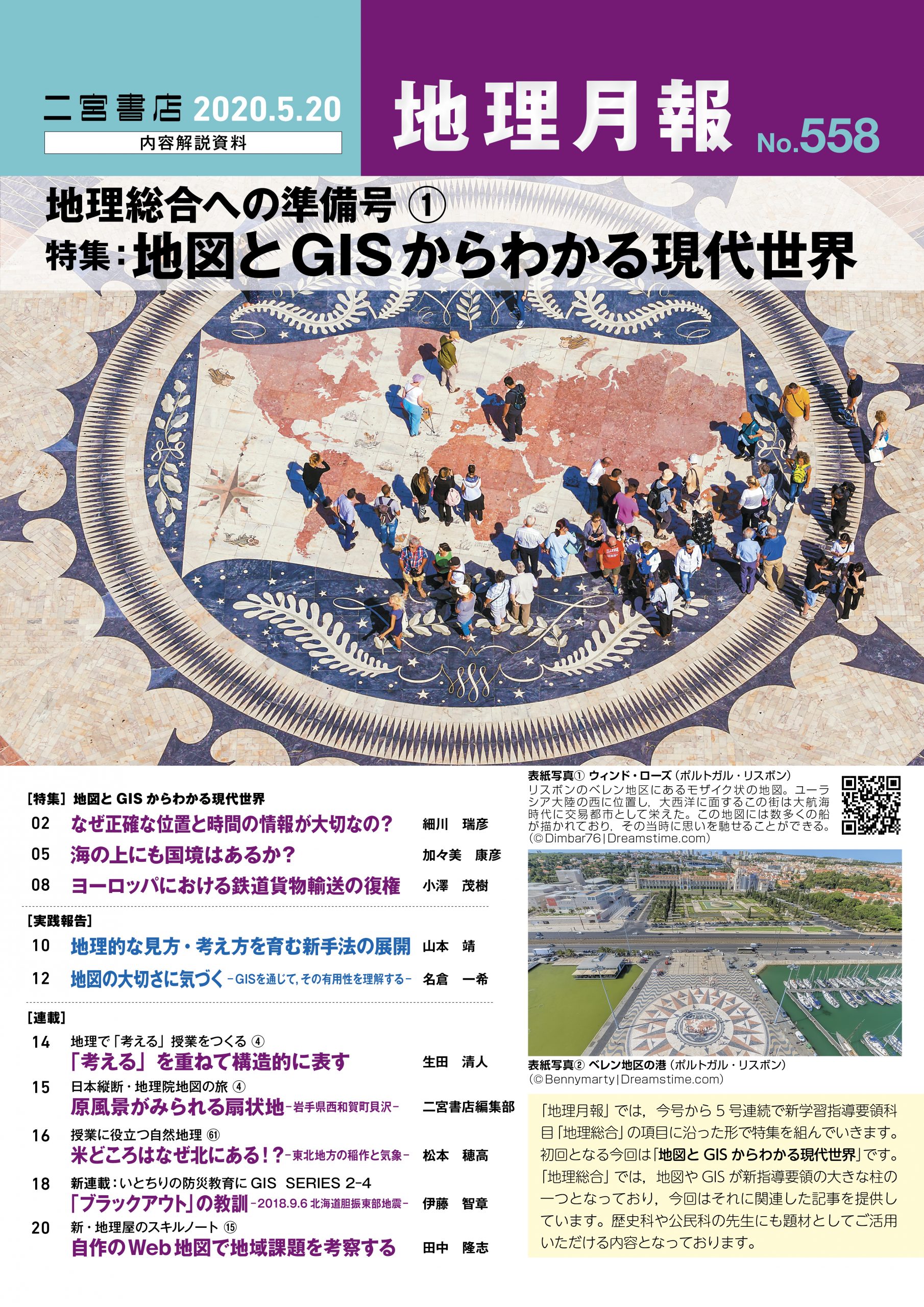 地理月報の第558号は,2020年5月20日の発行です。第558号は「地理総合への準備号①」です。5号連続で,新しい学習指導要領で必修化される「地理総合」についての記事を掲載してまいります。特集は,『地図とGISからわかる現代世界』です。